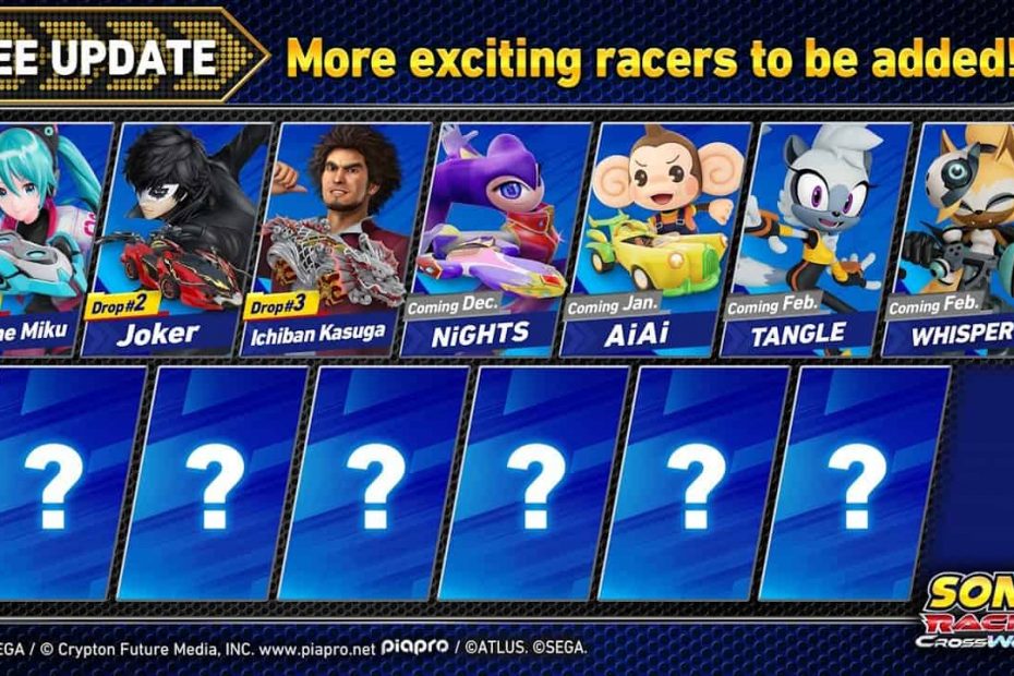 As part of its Season Pass, the roster of SEGA’s Sonic Racing: CrossWorlds is set to feature NiGHTS, AiAi, Tangle, and Whisper.