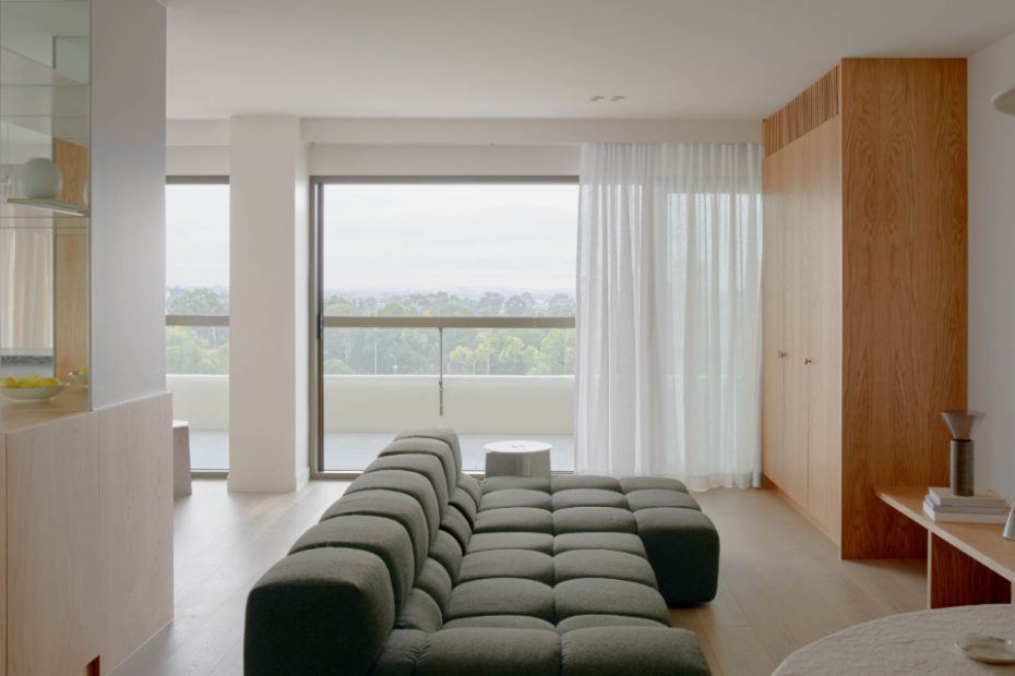Now, the apartment offers new outlooks carved between the existing columns to create a ‘more layered experience’ of the building’s location, nestled between two of Melbourne’s best parklands.