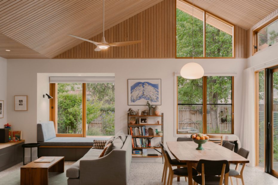 Achieving this starts with interrogating what clients actually need to live comfortably, rather than market driven ‘must-haves’. Green Sheep Collective director Shae Parker McCashen explains, ‘We respect the fact that many people who build or renovate their homes may one day need to sell and there can be a temptation to add space in an attempt to preempt market demand, but what we’re seeing more and more is people who appreciate and want homes that are just enough and not more than they need.’