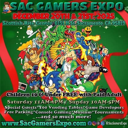 Happening this weekend, Sac Gamers Expo 2025 will bring all-star talent, musical acts, and plenty of gaming fun to Sacramento’s Scottish Rite Masonic Center December 20 and December 21.