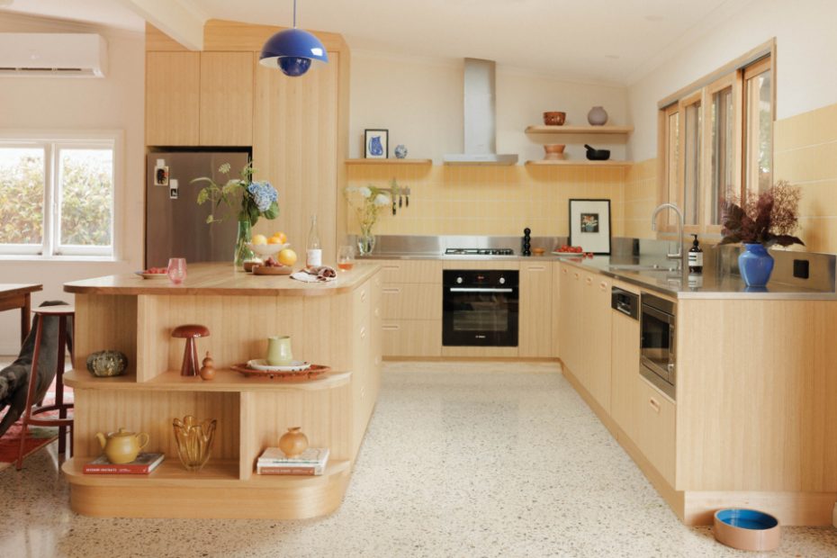 Inspired by the yellow sands and red earth of the Australian outback, she selected a butter yellow and terracotta palette for this Elwood kitchen renovation, transforming a kitchen with a ‘standard white laminate vibe’ into a space brimming with personality.