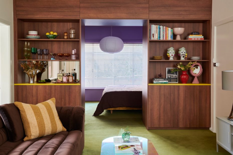 Kieran and Pauline Morrissey’s Melbourne apartment. Escape Velour carpet in Esther from Supertuft. Photo – Eve Wilson
