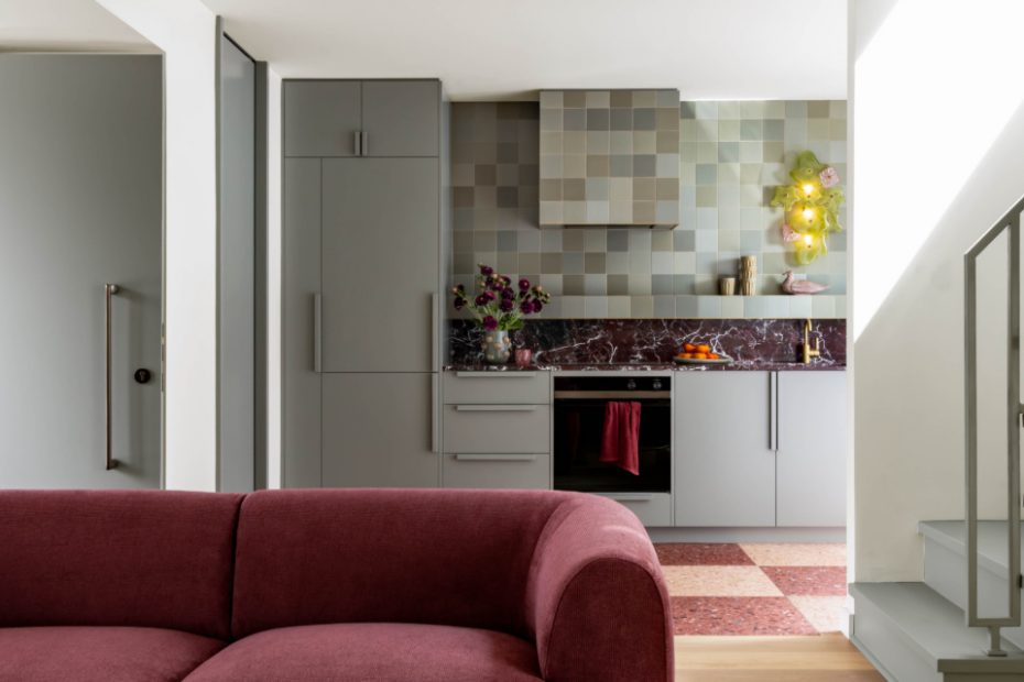 With a playful name like Bon Bon for the entire complex, there’s no shortage of sweet-inspired tones and bold patterns throughout the interiors. For example, Papi is drenched in pistachio and layered with caramel tones, while Tonka reveals vanilla bean hues across the statement kitchen.